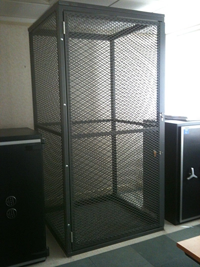 Above is a ssec1 security cage 4ftx4ft x8ft high with an expanded metal infill, powder coated in black.